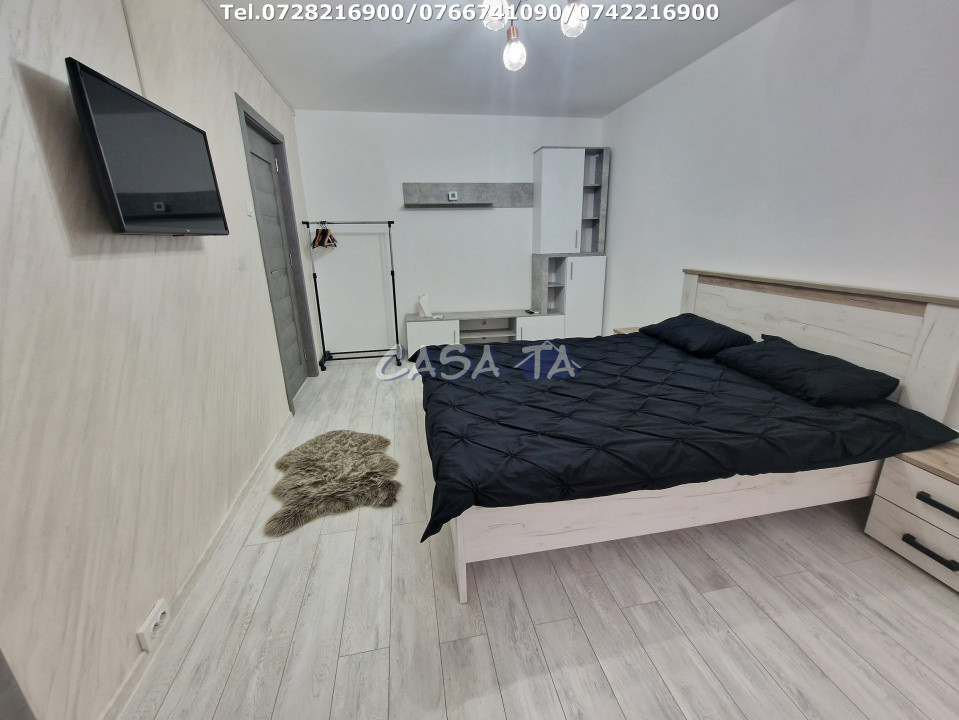 Garsoniera este compusă dintr-o cameră luminoasă, o baie modernă, o bucătărie utilată cu frigider, aragaz și mașină de spălat, precum și un hol și un balcon unde vă puteți relaxa. Printre dotările suplimentare se numără centrala termică și aerul condiționat, asigurând confortul pe tot parcursul anului.
