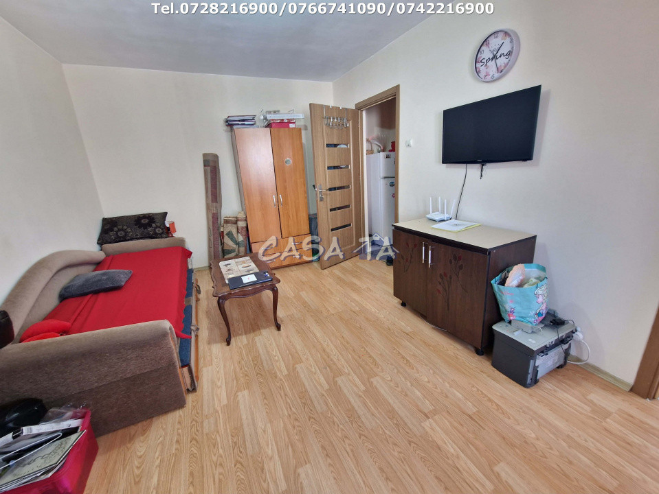 Garsoniera este compusă dintr-o cameră spațioasă, baie, bucătărie, hol și un balcon închis, ideal pentru relaxare. Printre dotările incluse se numără frigider, aragaz, mașină de spălat și centrală termică, asigurând confortul necesar. Finisajele sunt moderne, incluzând gresie, faianță și pereți tratați cu glet/lavabil, iar ușa metalică oferă un plus de siguranță.