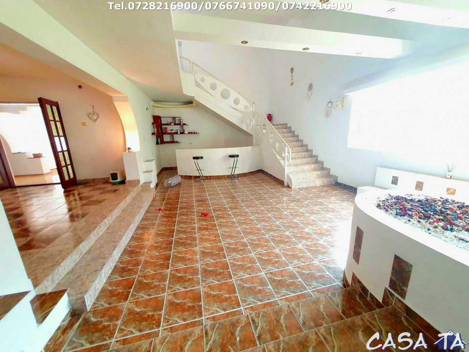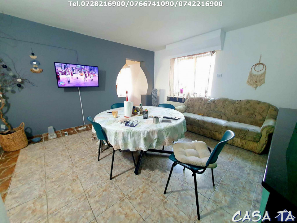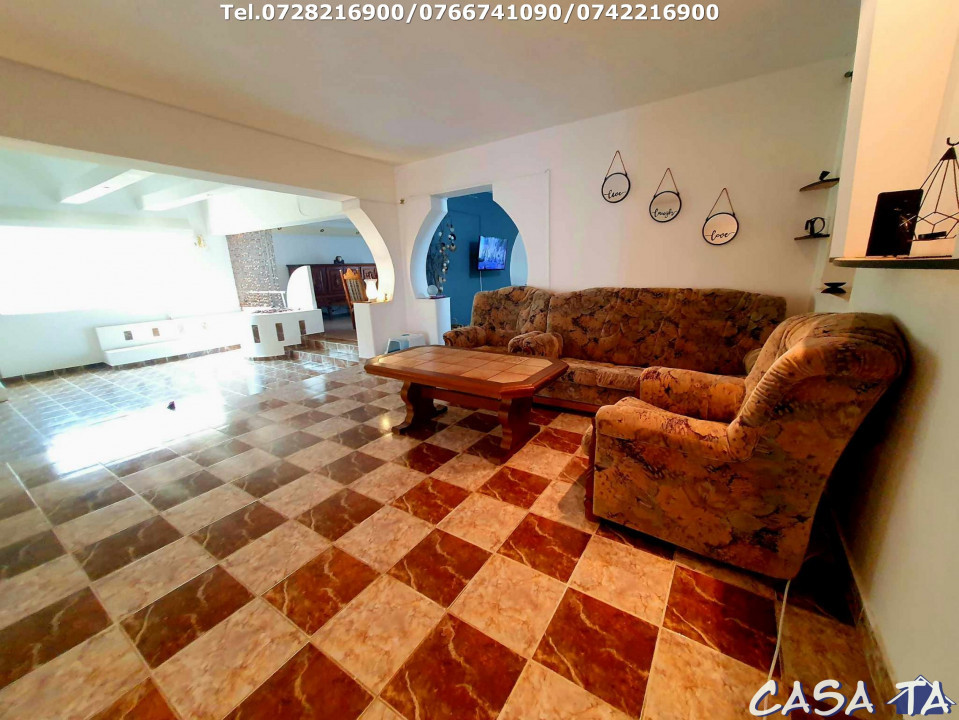 Agentia Imobiliara CASA TA ofera spre vanzare casa la cheie D+P+1, situata in Turcinesti, la doar 7 km distanta de Tg-jiu si teren aferent in suprafata de 2106 mp, cu o deschidere la strada de 18 ml. Imobilul este compus din: 10 camere, 2 bai, bucatarie, terasa, bucatarie de vara, 2 balcoane, spatii depozitare, dressing-uri, hol, scara interioara. Constructia este realizata din caramida acoperita cu tigla, edificata in anul 1993, izolatie termica de 10 cm, geamuri termopan tripan, avand o suprafata utila de 614 mp. Utilitati: apa curenta, gaze, canalizare (prin fosa septica), curent electric, cablu Tv, internet.Finisaje: Gresie, faianta, pereti glet/lavabila, parchet, usa PVC. Facilitati: Zona linistita, livada pomi fructiferi (nuci, pruni, gutui, meri, peri, etc), curte generoasa amenajata cu flori. Panoramica superba. Pret: 289.000 Euro/Negociabil. Telefon: 0742216900; 0728216900.