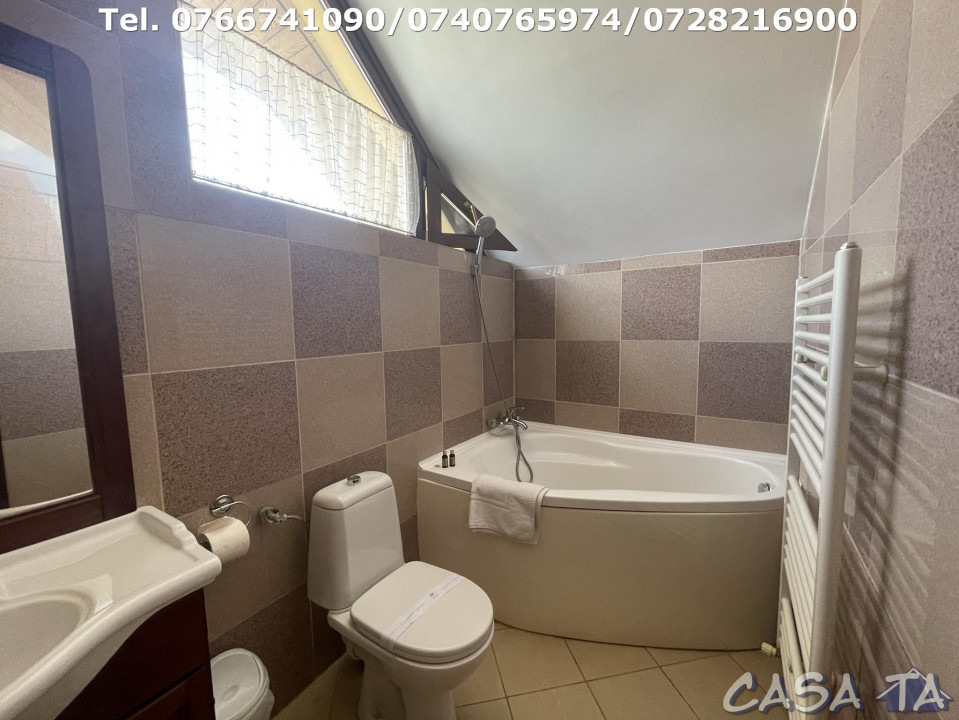 Etaj: 6 Camere, hol, 6 bai-2 cu jacuzzi, 2 cu cabina de dus si 2 cu cada de colt, balcon cu vedere spre Strada Grivitei, pe intreaga suprafata a etajului fiind parchet clasic de esenta tare, granit si gresie italiana(in bai).