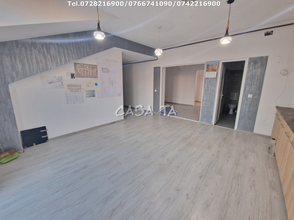 Agenția Imobiliară CASA TA oferă spre închiriere un spațiu comercial modern, situat la etajul 1 al unei clădiri pe Bulevardul Ecaterina Teodoroiu din Târgu Jiu. Cu o suprafață generoasă de 300 mp, acest spațiu este ideal pentru diverse activități economice, beneficiind de o amplasare centrală, într-o zonă intens circulată, care asigură o vizibilitate excelentă.