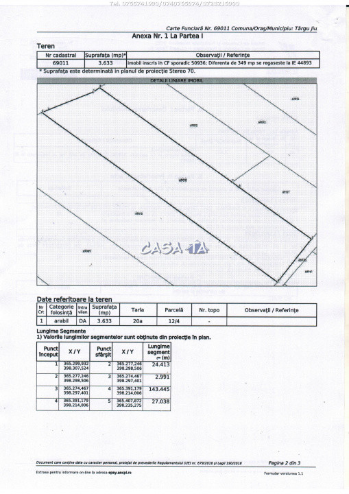 Terenul are o suprafata totala de 3633 mp, cu o deschidere de 31 ml.