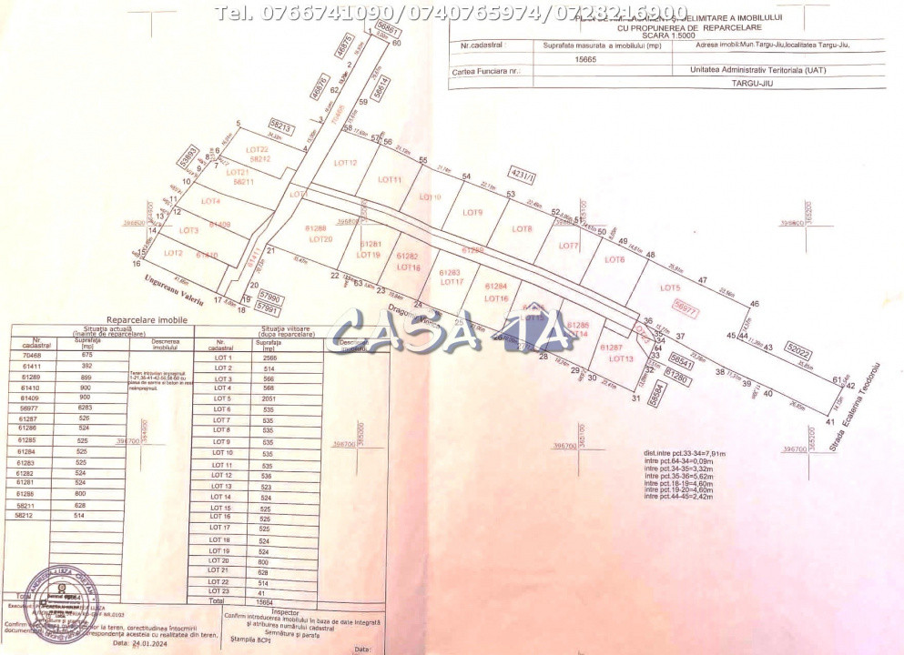 Agentia Imobiliară CASA TA vă oferă spre vânzare 7 parcele de teren, fiecare având o suprafață de aproximativ 525 mp (21m/25m), situate într-o zonă în plină dezvoltare din Târgu Jiu.